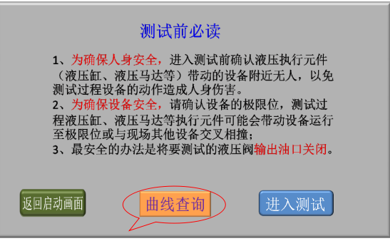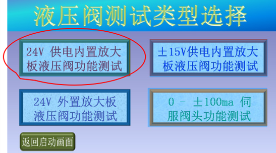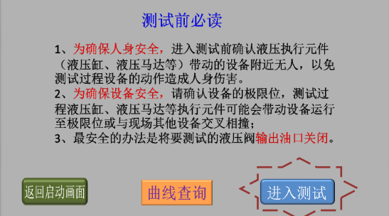3、確認現(xiàn)場人員和設備安全后,點擊“進入測試”,進入液壓閥測試類型選擇畫面;