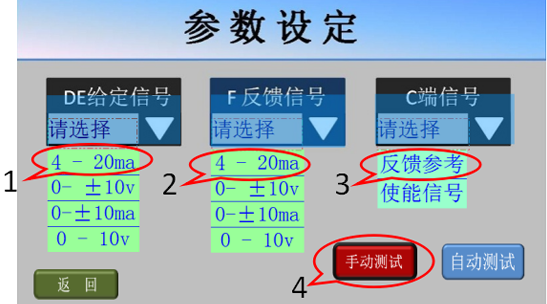 7、手動測試基本正常后,點擊屏幕左下方的返回鍵,返回參數(shù)設定畫面;