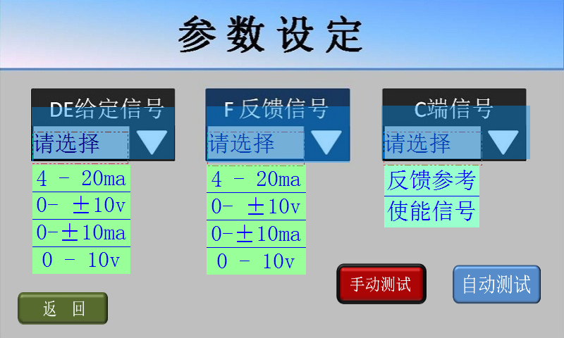 7、手動測試基本正常后,點(diǎn)擊屏幕左下方的返回鍵,返回參數(shù)設(shè)定畫面;